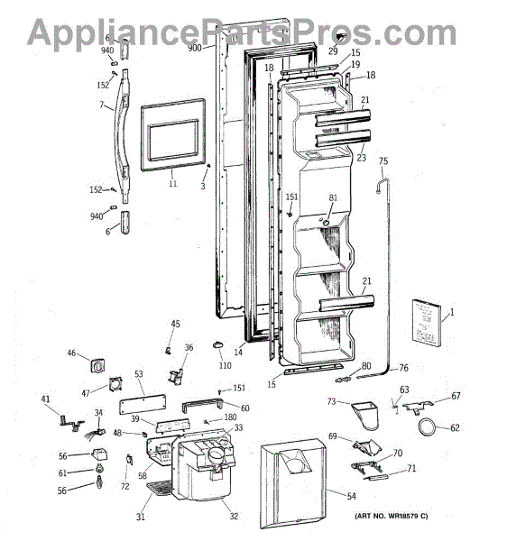 The Door Handle is an OEM part for GE refrigerators. This part provides a secure and comfortable grip for opening and closing the refrigerator door.