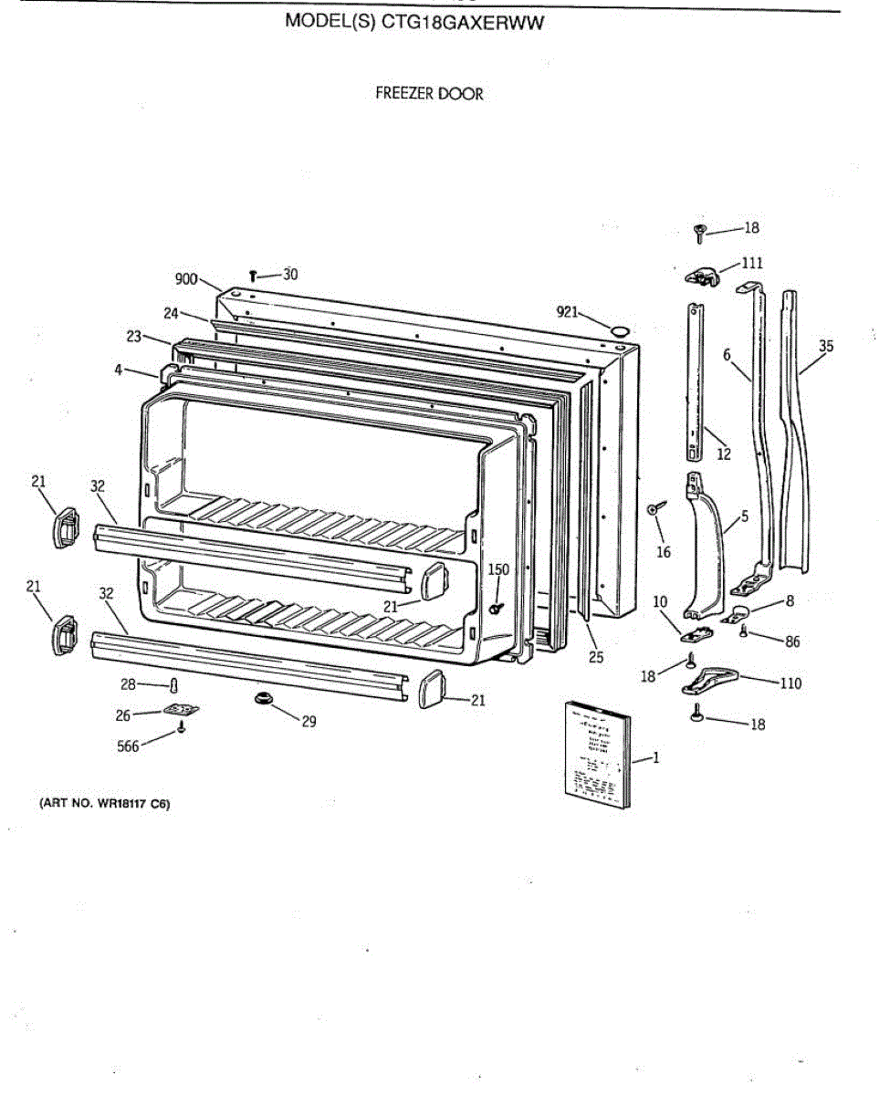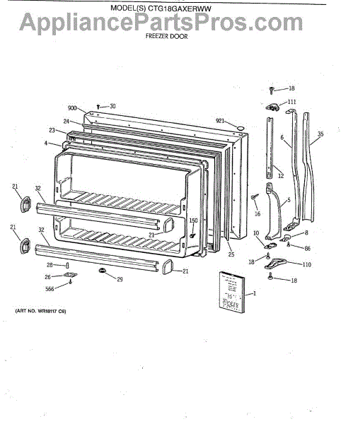 Parts for Ge CTG18GAXERWW: 01 - Freezer Door Parts