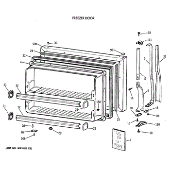 Parts for Ge CTT18GAXBRAA: 01 - Freezer Door Parts