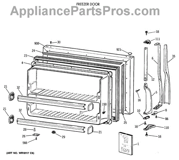 Parts for Ge CTX18BAXCRWH: 01 - Freezer Door Parts