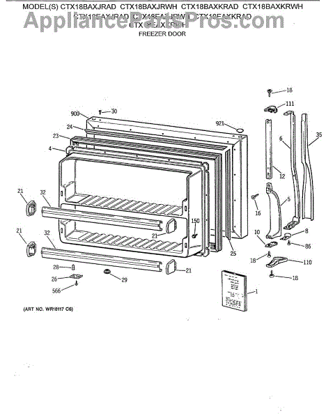 Parts for Ge CTX18BAXJRWH: 01 - Freezer Door Parts