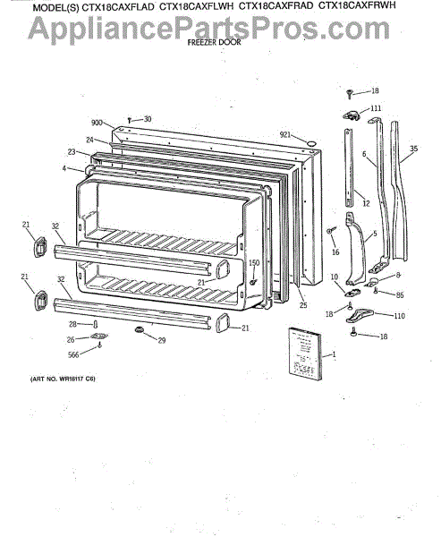 Parts for Ge CTX18CAXFRWH: 01 - Freezer Door Parts