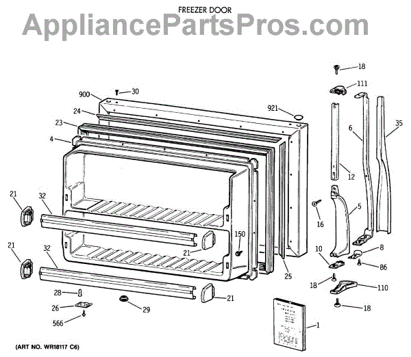 Parts for Ge CTX18CIXCRWW: 01 - Freezer Door Parts