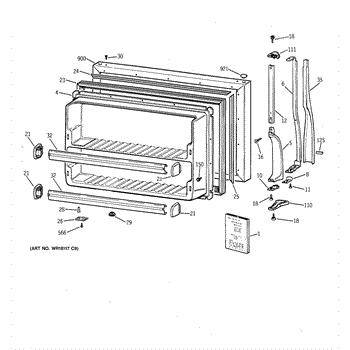 Parts for Ge CTX18GIZBRWW: 01 - Freezer Door Parts