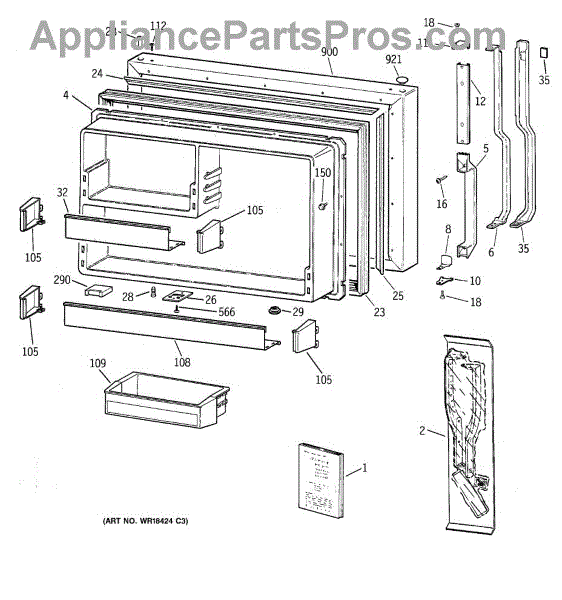 Parts for Ge CTX19MACBRWW: 01 - Freezer Door Parts