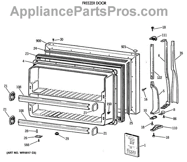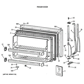 Parts for Ge CTX24GASLRWH: 01 - Freezer Door Parts