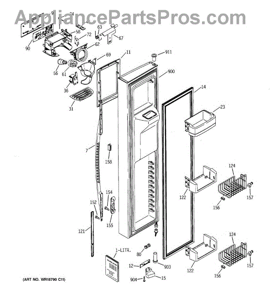 The Door Recess Spring is an OEM replacement part for GE side-by-side refrigerators. It sits within the icemaker door frame to control movement and allow smooth closing/opening of the access point.