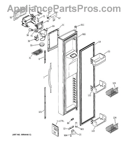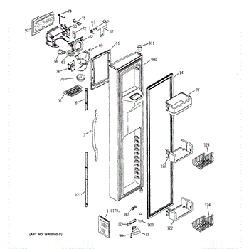 The Ice Door Assembly is an OEM part for GE refrigerators. It is integral to the ice dispenser system, controlling access to the ice chute. This component ensures the efficient delivery of ice cubes or crushed ice when activated and seals off the chute when not in use to maintain the freezer's temperature and prevent frost buildup.