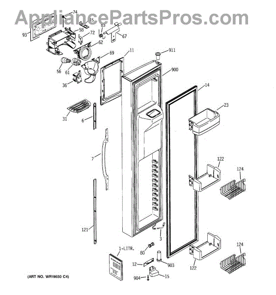 The Door Recess Spring is an OEM replacement part for GE side-by-side refrigerators. It sits within the icemaker door frame to control movement and allow smooth closing/opening of the access point.