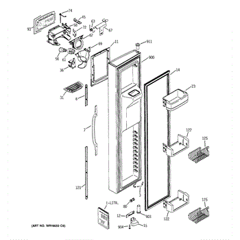 The Door Recess Spring is an OEM replacement part for GE side-by-side refrigerators. It sits within the icemaker door frame to control movement and allow smooth closing/opening of the access point.
