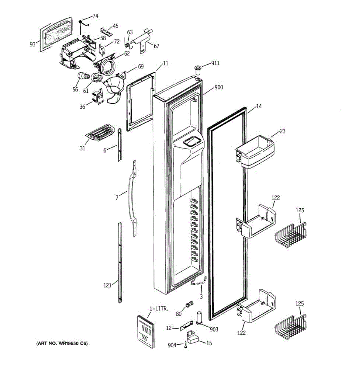 The Ice Door Assembly is an OEM part for GE refrigerators. It is integral to the ice dispenser system, controlling access to the ice chute. This component ensures the efficient delivery of ice cubes or crushed ice when activated and seals off the chute when not in use to maintain the freezer's temperature and prevent frost buildup.