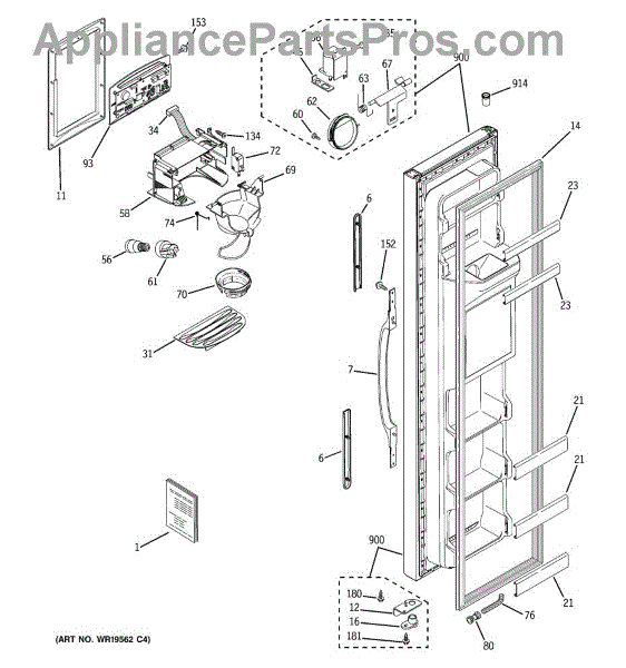 Parts for Ge HST25IFPHWW: 01 - Freezer Door Parts