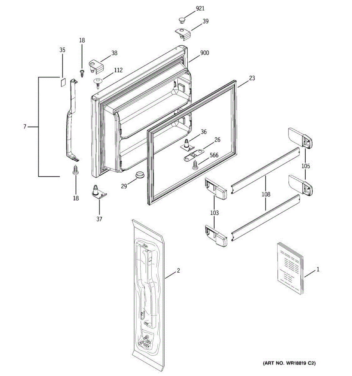 Parts for Ge HTS18JCPBRWW: 01 - Freezer Door Parts