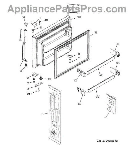A replacement bottom door cap that restores the finished edge and support at the lower corner of the appliance door. Keeps the door looking complete and helps protect the hinge area from damage. What it does