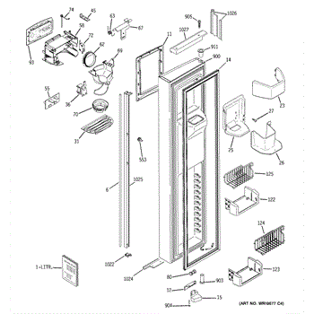 The Ice Door Assembly is an OEM part for GE refrigerators. It is integral to the ice dispenser system, controlling access to the ice chute. This component ensures the efficient delivery of ice cubes or crushed ice when activated and seals off the chute when not in use to maintain the freezer's temperature and prevent frost buildup.