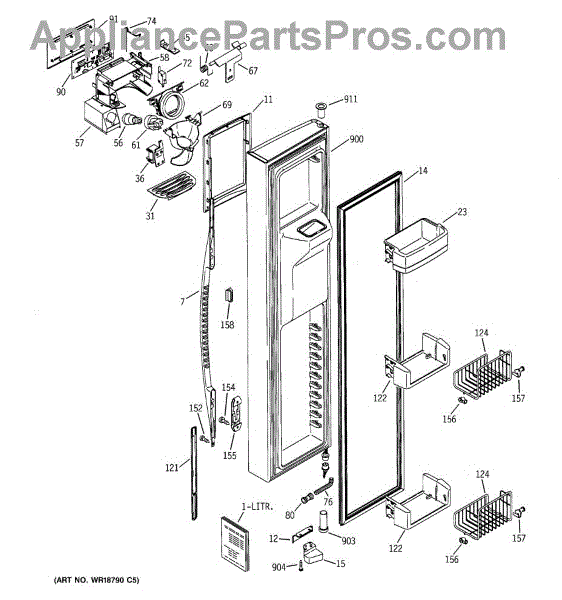 Ice dispenser door assembly seals the ice chute opening on your refrigerator. Replace if cracked, warped, or the rubber gasket is damaged and leaking air.