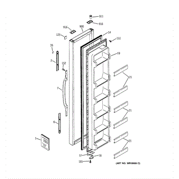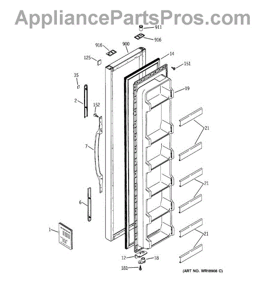 The Door Handle is an OEM part for GE refrigerators. This part provides a secure and comfortable grip for opening and closing the refrigerator door.