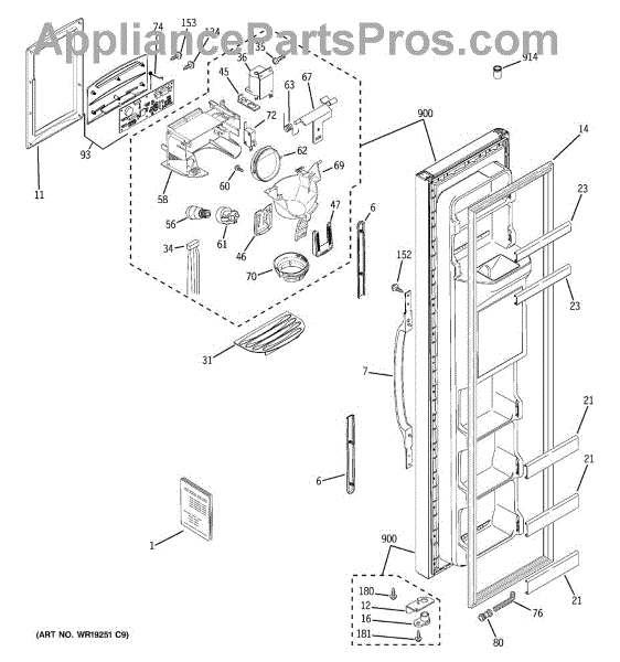 Parts for Ge RSG25KEPCFWW: 01 - Freezer Door Parts