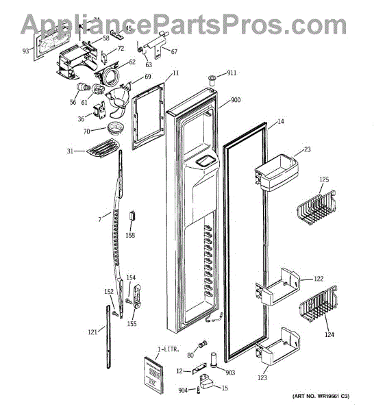 The Ice Door Assembly is an OEM part for GE refrigerators. It is integral to the ice dispenser system, controlling access to the ice chute. This component ensures the efficient delivery of ice cubes or crushed ice when activated and seals off the chute when not in use to maintain the freezer's temperature and prevent frost buildup.
