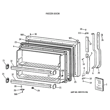 Parts for Ge TBX18JIXBRWW: 01 - Freezer Door Parts