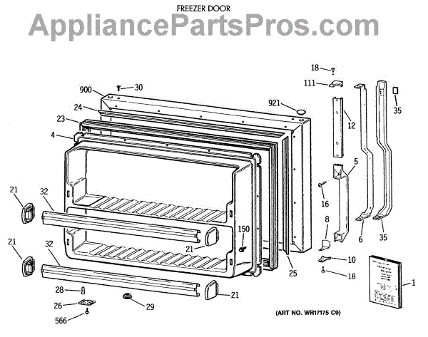 Parts for Ge TBX18MAXBRAA: 01 - Freezer Door Parts