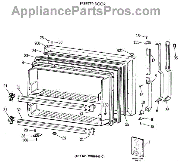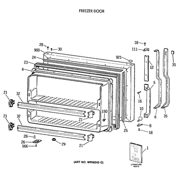 Parts for Ge TBX21JIXBRWW: 01 - Freezer Door Parts