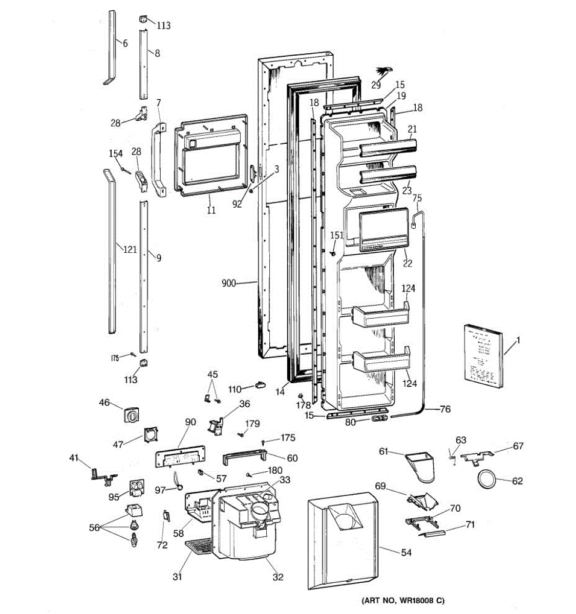 The Ice Door Assembly is an OEM part for GE refrigerators. It is integral to the ice dispenser system, controlling access to the ice chute. This component ensures the efficient delivery of ice cubes or crushed ice when activated and seals off the chute when not in use to maintain the freezer's temperature and prevent frost buildup.