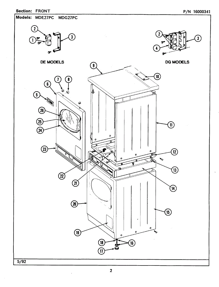 Parts for Maytag MDE27PCAEW: 01 - Front Parts