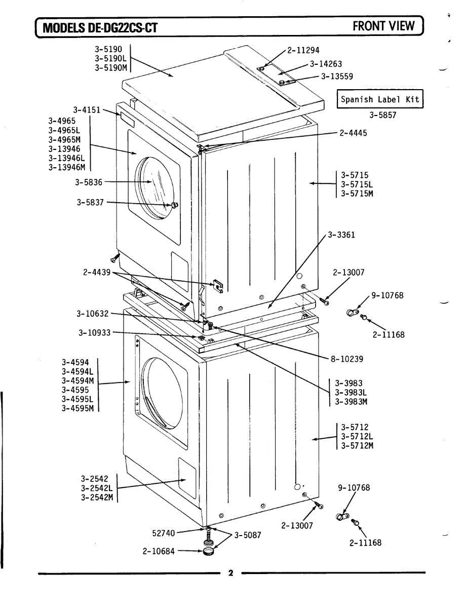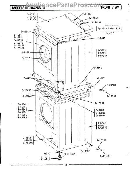 Parts for Maytag DE22CT: 01 - Front View Parts