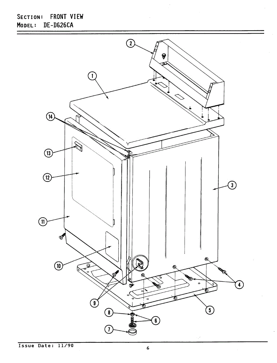 Parts for Maytag DE26CA: 01 - Front View - Ca Models Parts