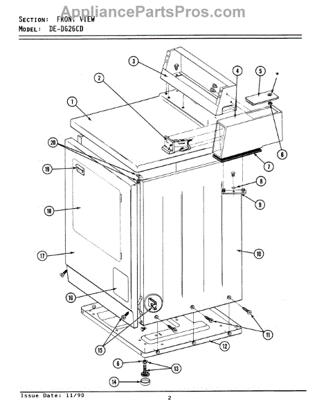 Parts for Maytag DE26CD: 01 - Front View - Cd Models Parts