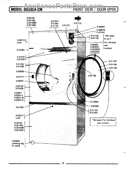 Parts for Maytag DG33CA: 01 - Front View-Door Open Parts