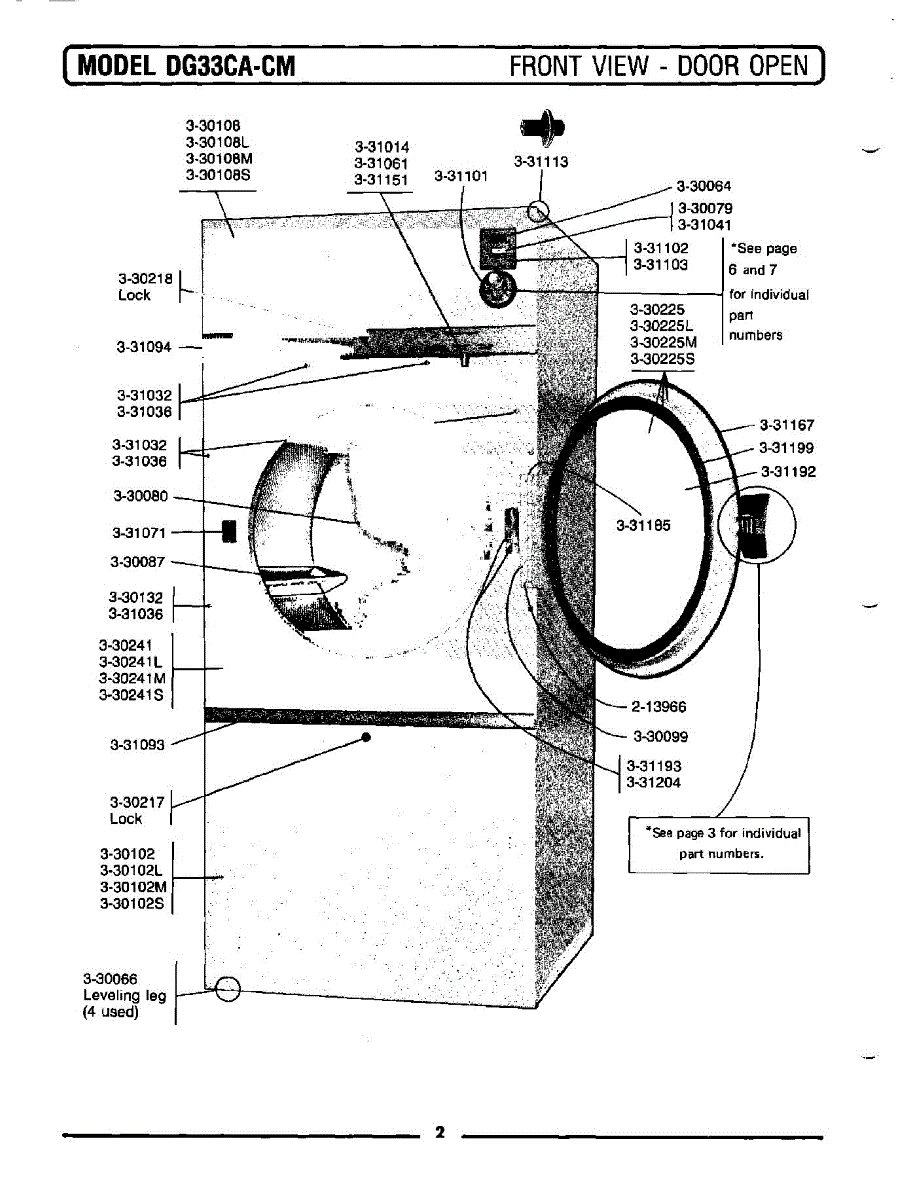 Parts for Maytag DG33CM: 01 - Front View-Door Open Parts