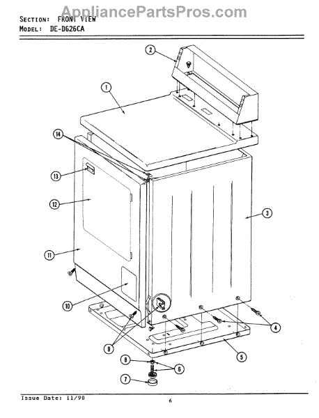 Parts for Maytag GDE26CA: 01 - Front View - Ca Models Parts