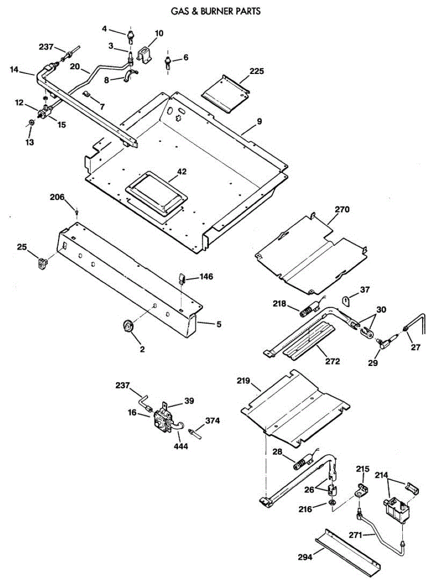 Broil shield for gas ranges. Mounts inside the oven cavity to protect components from direct heat. Replace if cracked, warped, or damaged.