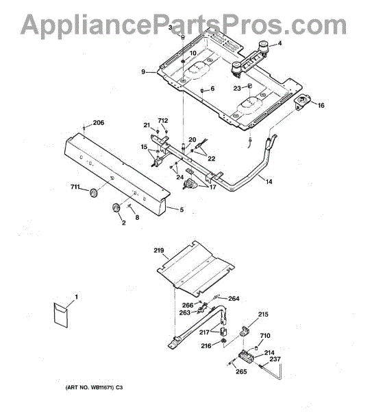 Parts for Ge RGB525PPA1WW: 01 - Gas & Burner Parts