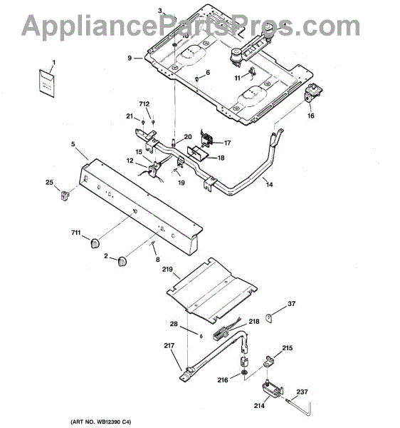 Parts for Ge RGB526PEA3CT: 01 - Gas & Burner Parts