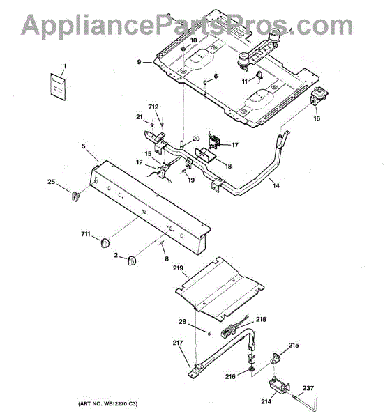 Parts for Ge RGB528PEH2WW: 01 - Gas & Burner Parts