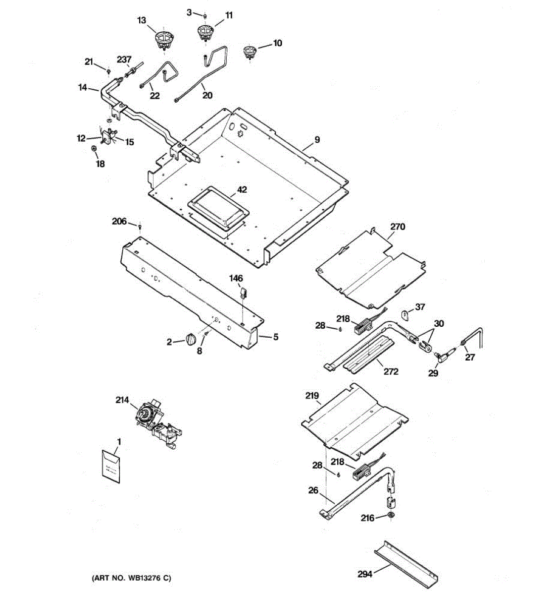 Parts for Ge RGB740BEH2WH: 01 - Gas & Burner Parts