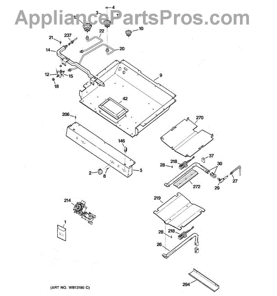 Parts for Ge RGB745EEH1BB: 01 - Gas & Burner Parts