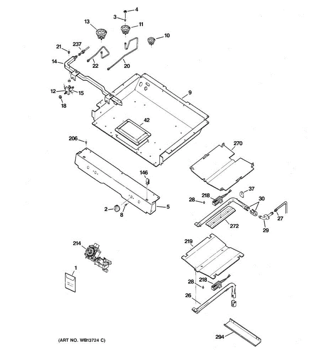 Parts for Ge RGB746WEH5WW: 01 - Gas & Burner Parts