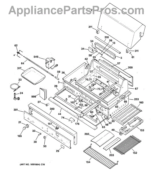Parts for Ge ZGG36L31CSS: 01 - Gas Grill Parts