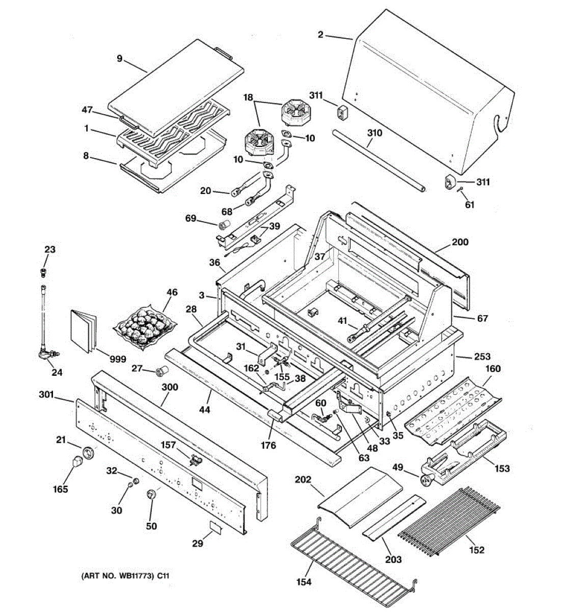 This grill cover handle is used to open and close a grill. If the handle is missing, opening the grill can be difficult and dangerous. Over time, heat from the grill can cause the handle to become cracked or break and fall off. When this happens, the handle should be replaced before using the grill. It is not advised to use a makeshift handle or open the grill with anything other than an OEM handle. Open the grill cover and look underneath to locate the screws for the handle. Remove the broken handle using a screwdriver. Save the screws for installing the new handle. Remove the handle from the packaging and line it up with the predrilled holes on the grill. Make sure the holes align. Install the screws from the backside of the lid and tighten. Close the grill. This grill cover handle is made of durable plastic and is sold individually. It does not come with installation screws. It is designed for use in grills manufactured by General Electric.