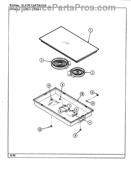 This terminal block provides an insulated, secure junction for incoming power or harness leads inside the appliance. Replacing a cracked, loose, or heat-damaged block restores a safe, reliable connection and helps prevent arcing or intermittent power.