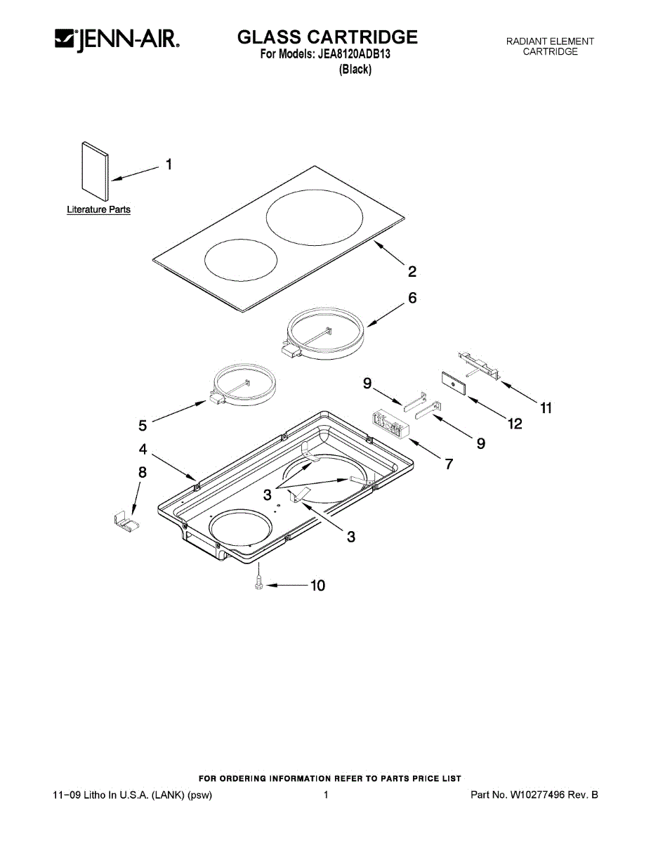 Made for use on an range, this part is a cooktop. It is manufactured out of a high-quality black glass material. The purpose of this component is to provide a stable surface to cook on. It also houses the cooking burners.The cooktop will need to be replaced if it is cracked or broken in any way. It can become cracked if something heavy comes into forceful impact with it. Sometimes, if food is burned badly on the surface, the cooktop will need to be replaced for cosmetic purposes or for operational issues. Make sure to unplug the refrigerator from the electrical outlet before trying to replace this part. Allow the unit ample time to cool down before starting this process.This component is sold individually and is sourced directly from the manufacturer. This specific cooktop is compatible with ranges that are manufactured by the Whirlpool and Jenn-Air brands.