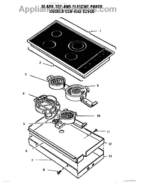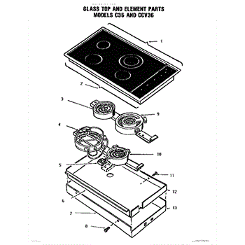 Parts for Thermador C36: 01 - Glass Top & Element Parts