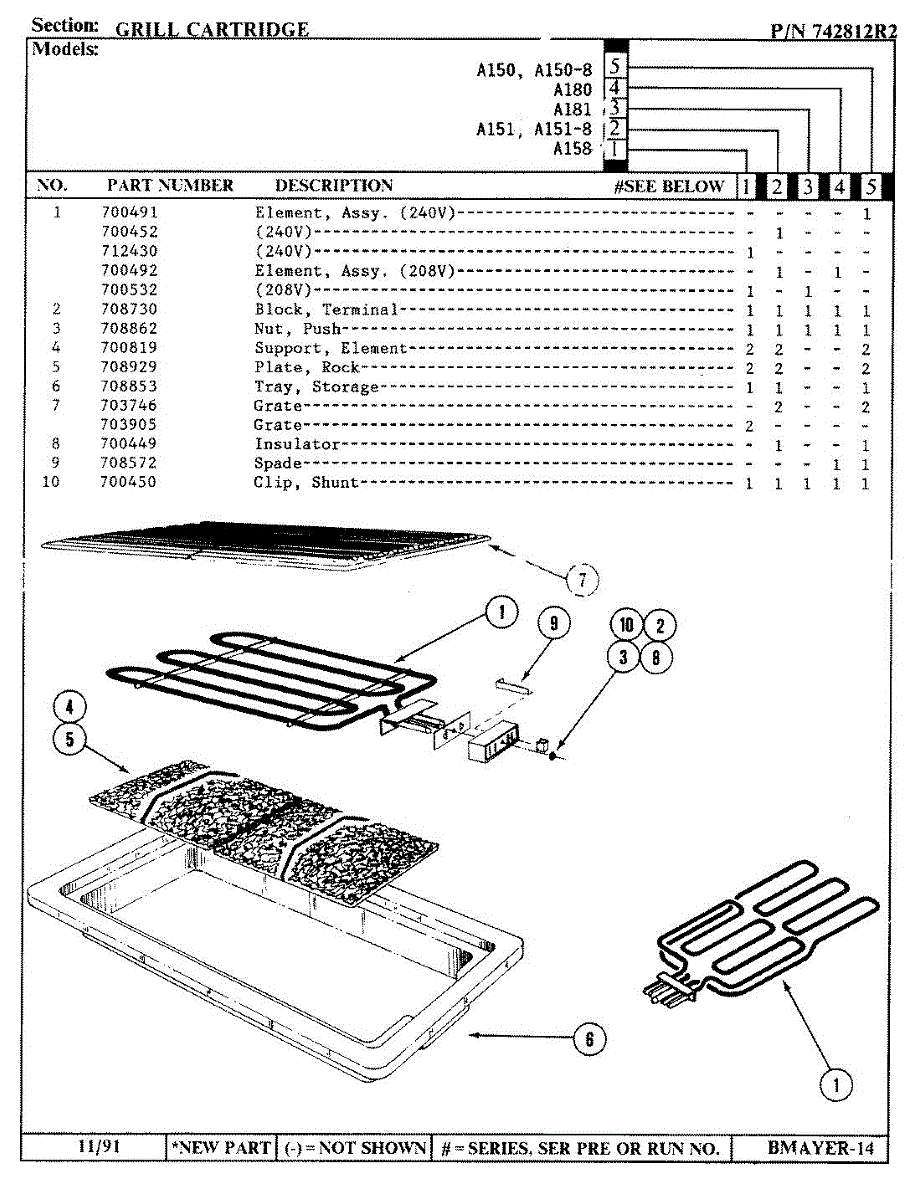 Parts for Jenn-Air A150: 01 - Grill Cartridge Parts