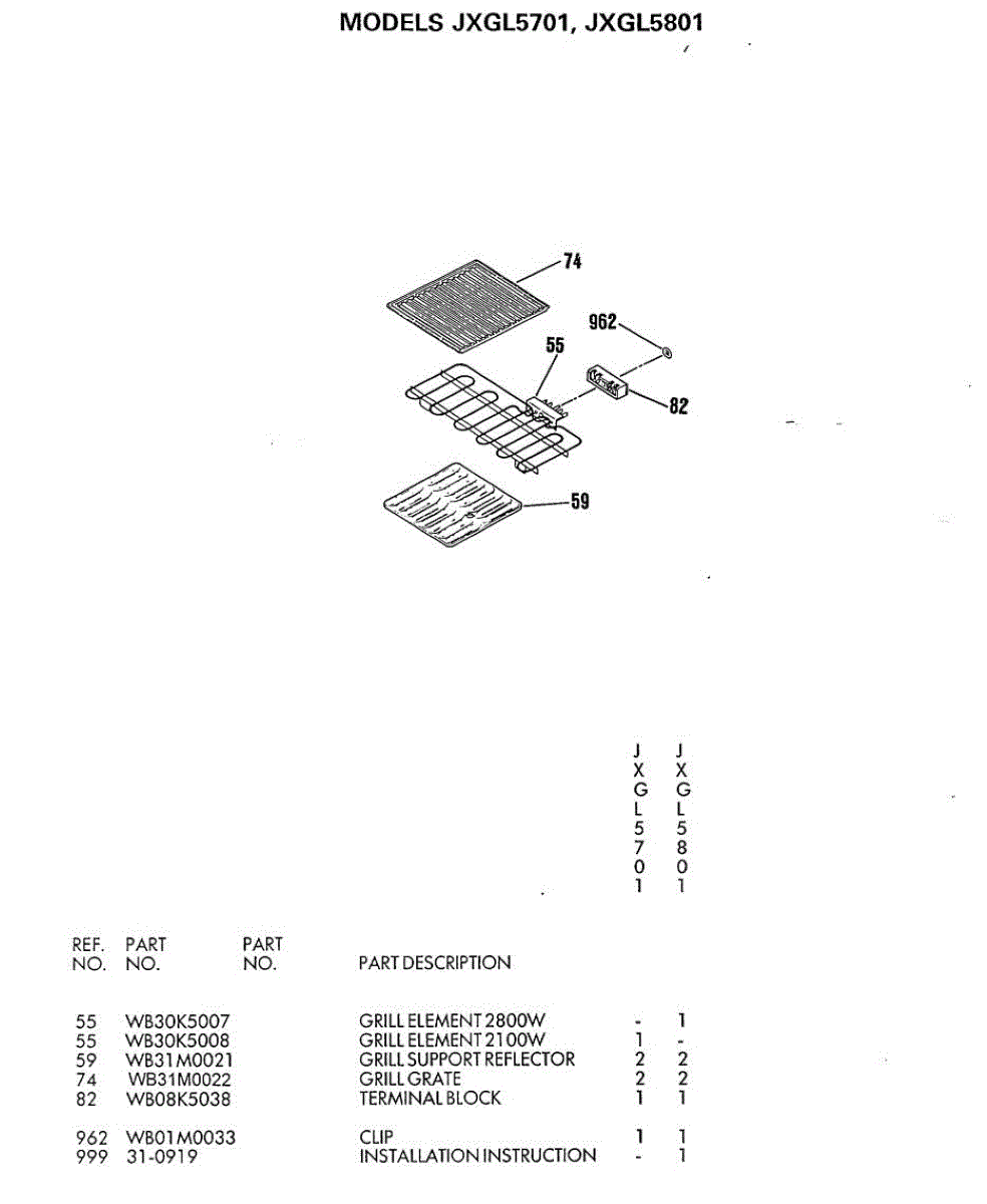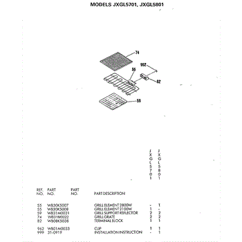 Parts for Ge JXGL5701: 01 - Section1 Parts
