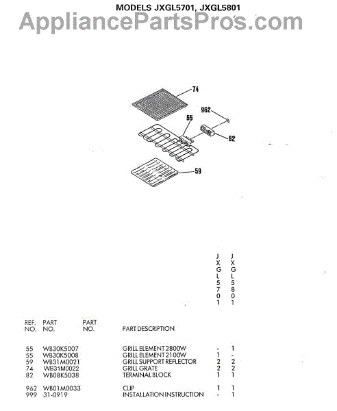 Parts for Ge JXGL5801: 01 - Section1 Parts