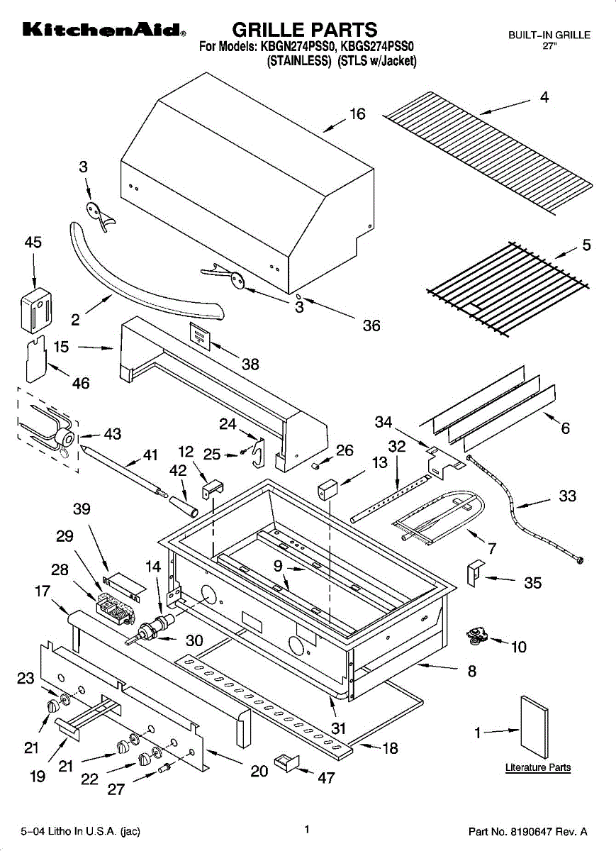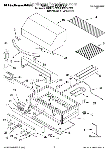 Parts for Kitchenaid KBGN274PSS0: 01 - Grille Parts